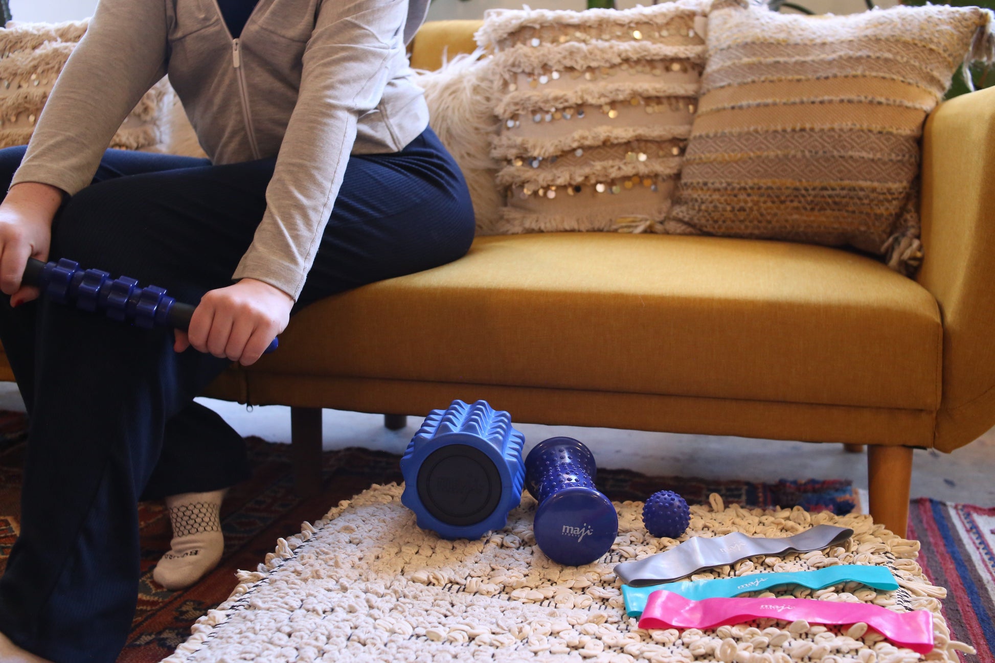 Foot massagerSize: 7.5 x 17.5 cm- The massage roller can be used on your feet, hand, back, shoulder and so on- The massage roller can be used for plantar fasciitis as well as for relieving heel & foot arch pain- The unique pressure points and arc design of the massage roller can greatly relieve muscle pain- High quality PVC material- An ideal product which can be taken to work and on trips in a briefcase or carry-on bagMaterial Composition : 100% PVC of High QualityMini Travel Foam RollerSize : 5.1" x 4.7"- Eco-certified EVA foam, SGS passed - 100% raw material, EVA foam- Unique design with dimpled surface for deeper massage to relieve muscular pain and tightness similar to the thumbs of a massage therapist- Stretches muscles and other soft tissues in multiple directions, breaking down "knots" to help increase your flexibility and help relieve back pain- Compact enough to travel withOutside : 100% EVA, Inner : 100 % EVADeep Tissue Roller StickSize : 14.5"- Increases blood flow to hurting and sore muscles- Reduces lactic acid & improves sports performance- Reduces muscle knots & trigger points- Accelerates muscle recovery- Improves strength & flexibility to muscles and joints- Middle: 100% PP, Handle: 70% PP, 30% NBRTrigger Point BallSize: 6.35 cm- Helps to relieve knots in your muscles that are also known as trigger points, which lead to Myofascial Pain Syndrome.- Great tool to help release and achieve melting of minor aches and pains to muscular tissue.- Material Composition : Natural Rubber3 Pack Resistance Bands- Pack of three resistance stretching bands- Strengthen & tone legs, hips, back, arms, gluts & more- Ideal for stretching muscles, Pilates, yoga, gyms, balance & resistance training- Great physical therapy tool for muscular rehabilitation & improving mobility- Minimizes pressure on joints when compared to weight-bearing exercises- The great travel exercise companion- Material Composition -100% TPR