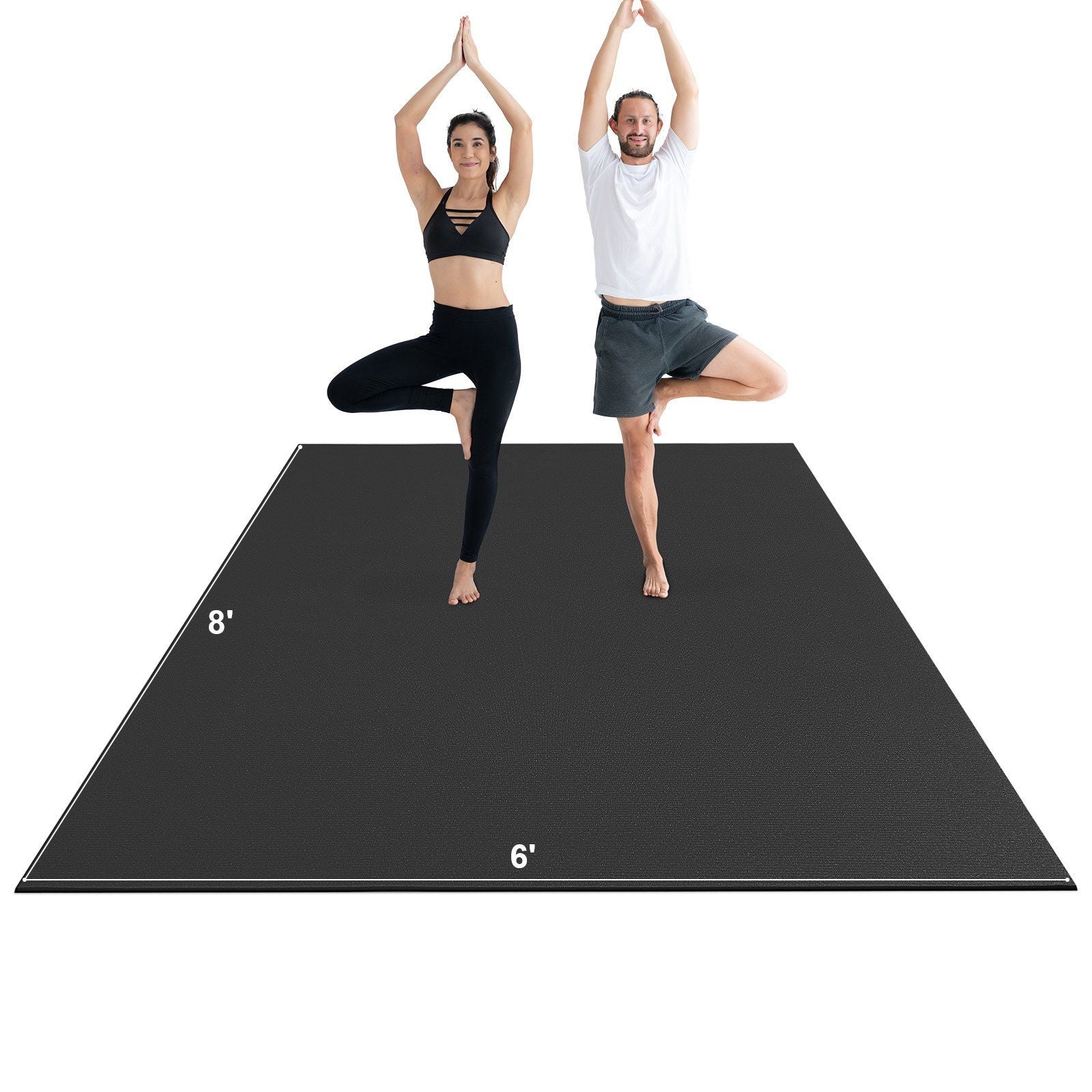 1.Professional Home Gym: The exercise mat features a large 8x6ft design, suitable for 2-3 people. Simply unroll and spread out the mat to turn any room in your home into a professional home gym. You can perform yoga, HIIT, aerobics, dance workouts, including P90x, Insanity, T25, Zumba, TRX, kettlebell exercises, jump rope, and various other exercises.