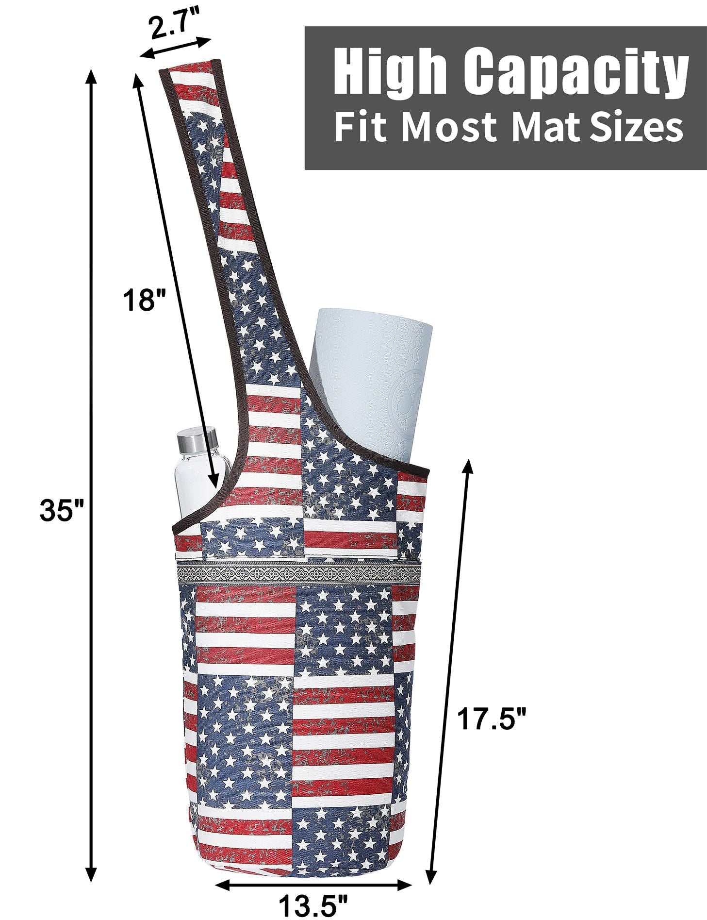 1.Fits most yoga mats: Large yoga bag (35 inches x 13.5 inches) and 3-pocket design provide plenty of storage space. Our yoga mat bag is spacious enough to hold most thick rolled up mats; with extra water bottles and mat towels. This is a functional package that can store all items separately.