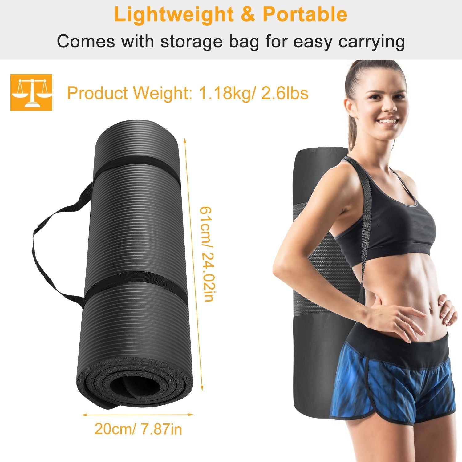**PREMIUM NBR MATERIAL*:72 x 24-Inches wide mat ensures comfort for all-purpose. With high density NBR material,the .6-inches thickness premium mat comfortably cushions discomfort to spine,hips,knees and elbows on hard floors. It’s ideal for beginner of Yoga to use.