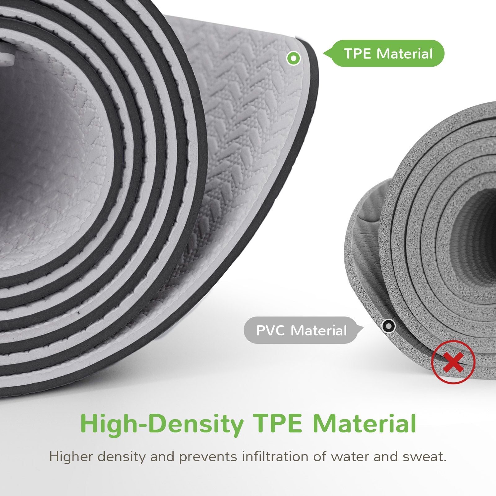 Environmental protection and comfort: The yoga mat is made of SGS certified TPE material; PVC-free; and odorless. It can be used by adults and children. It is skin-friendly and lightweight.