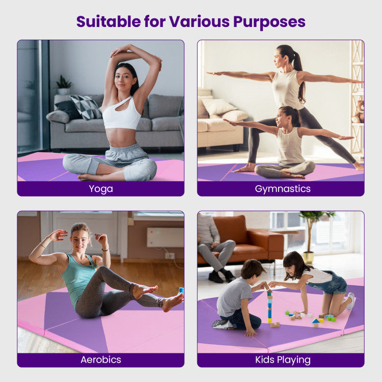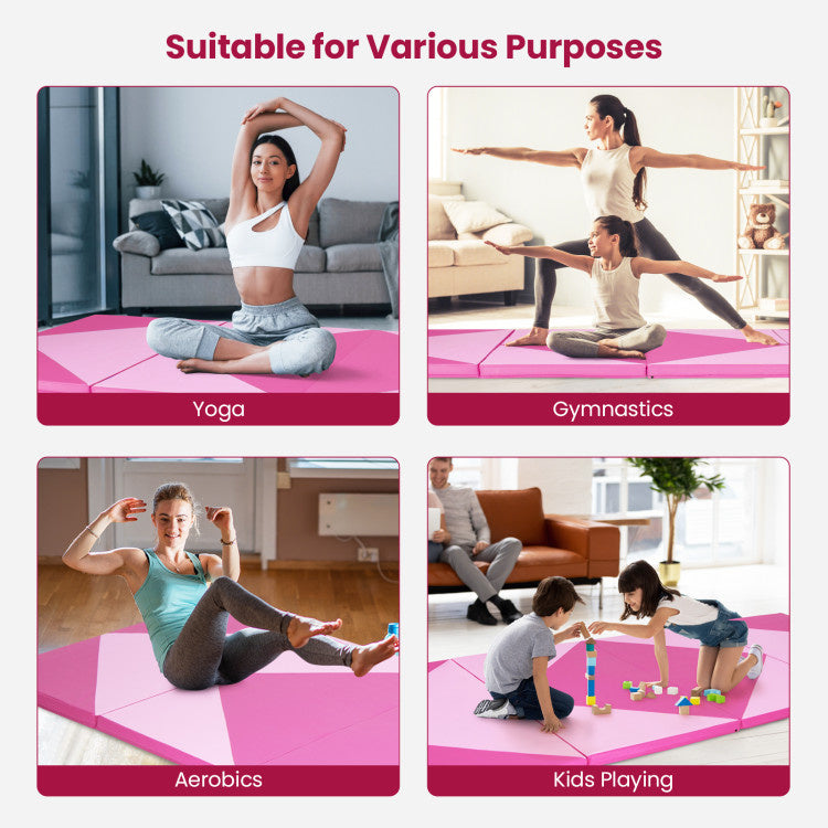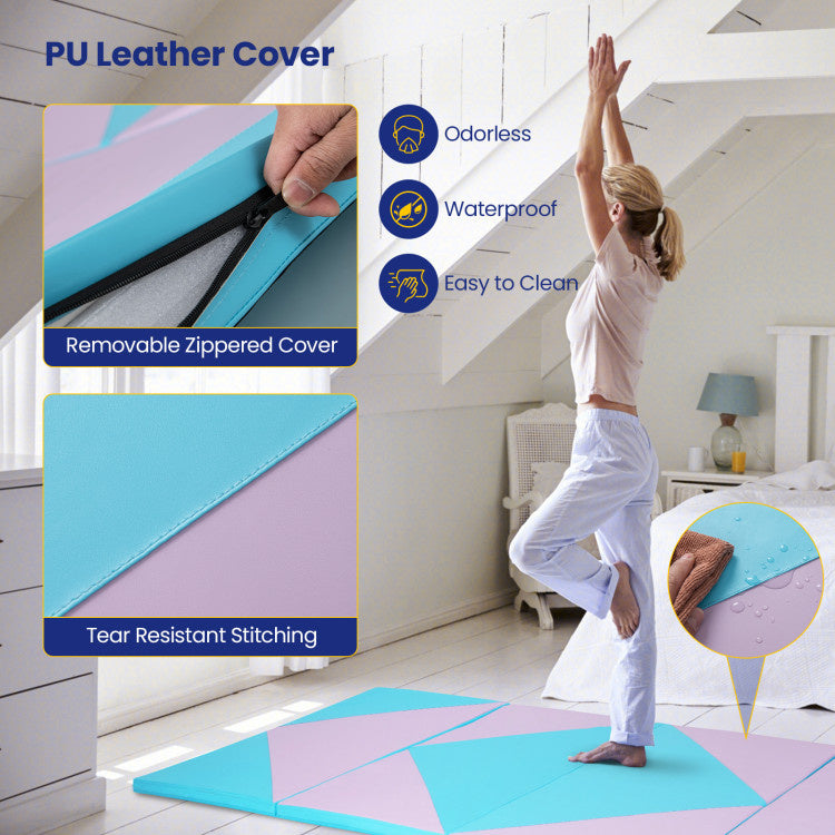 5.Space-Saving Design: This gymnastics mat features a foldable 4-panel design that allows for easy storage and space-saving convenience. Whether you're a professional gymnast, athlete, or fitness enthusiast, this versatile mat is perfect for various exercises, stretches, and routines.